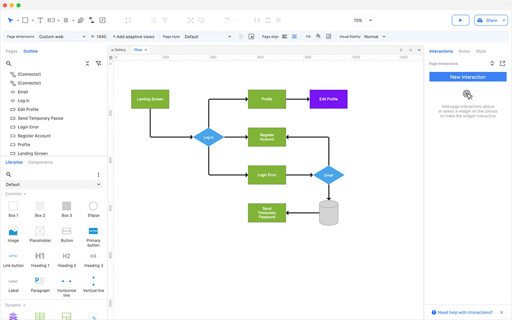 能够高效做出产品原型,绘制线框图、流程图等流程图等,结合批注、说明等功能。